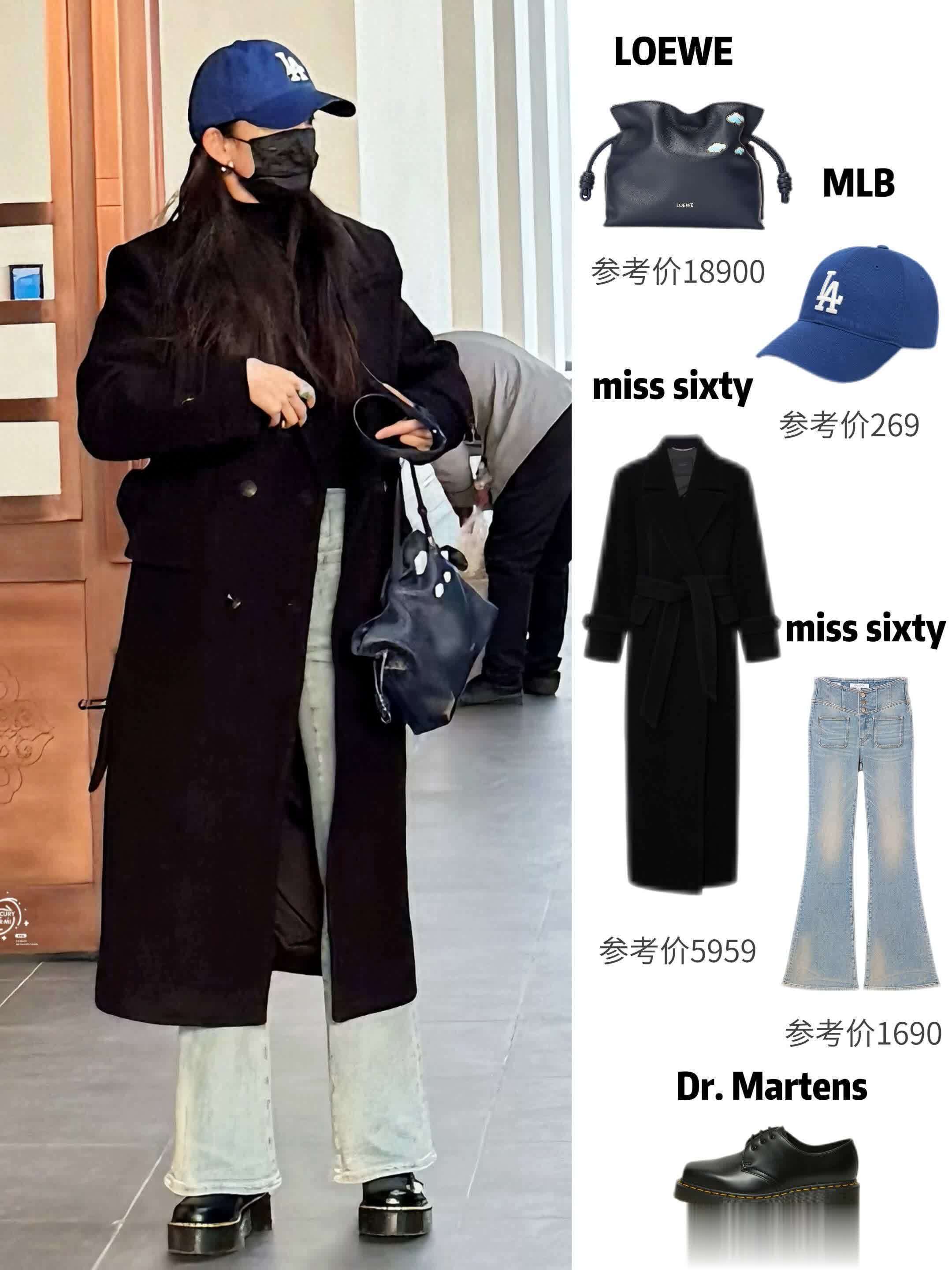 配饰更是“点睛狂魔”。蓝色棒球帽的点缀给整体加了份活力,黑色包包的质感满满,和鞋子颜色呼应,细节里全是用心。以前总觉得黑大衣“太沉闷”,现在才发现选对搭配,普通单品也能秒变高级。